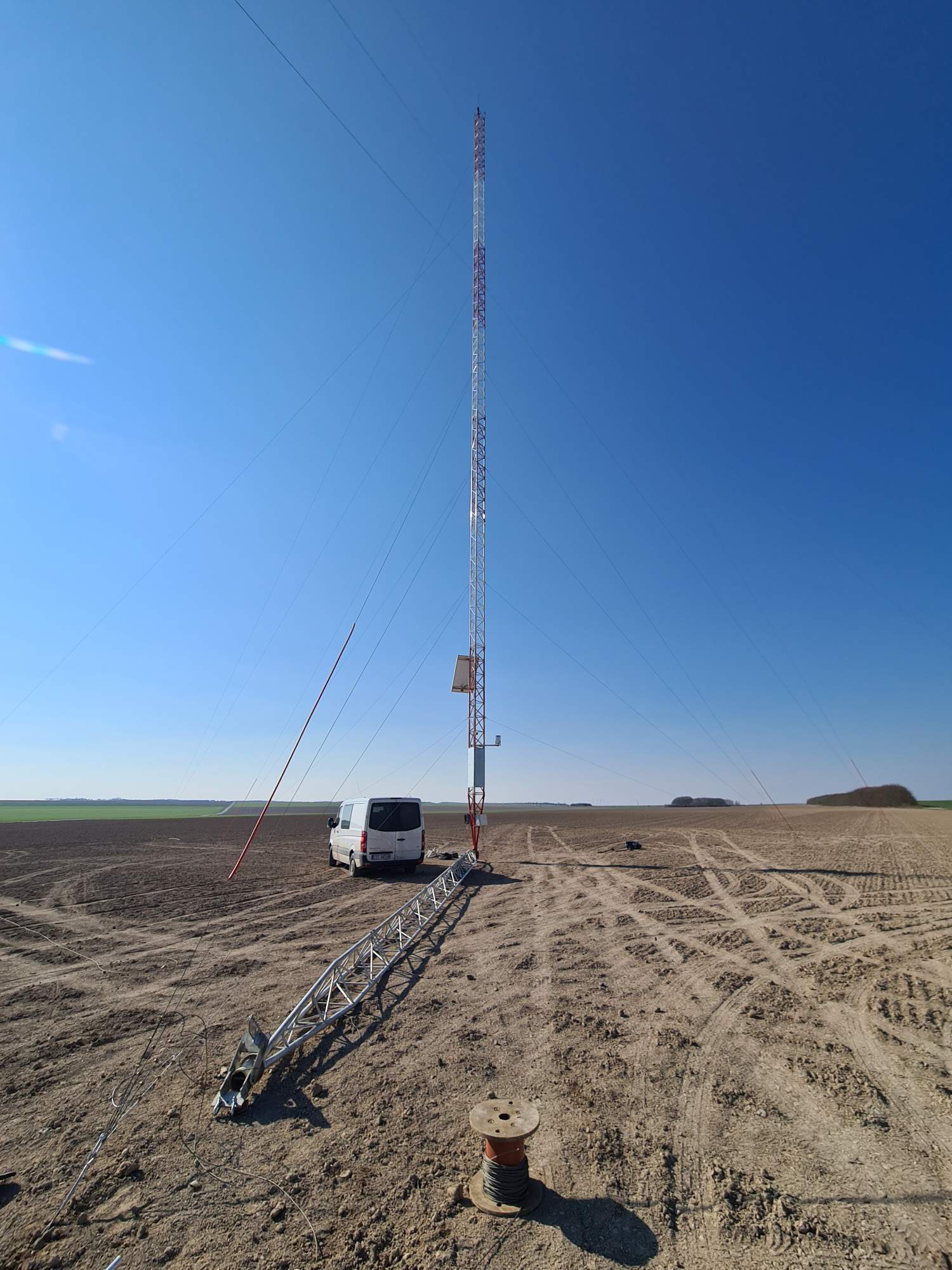 Un mât de 44m a été installé en février 2022 afin de réaliser des mesures sur l'activité des chauves-souris. Grâce à deux micros, situés à 5 et 44m, Eurowind Energy a pu enregistrer et étudier leurs comportements. Ainsi, notre équipe accompagnée d'écologues experts avons analysé leurs activités et défini un projet adapté à son environnement.