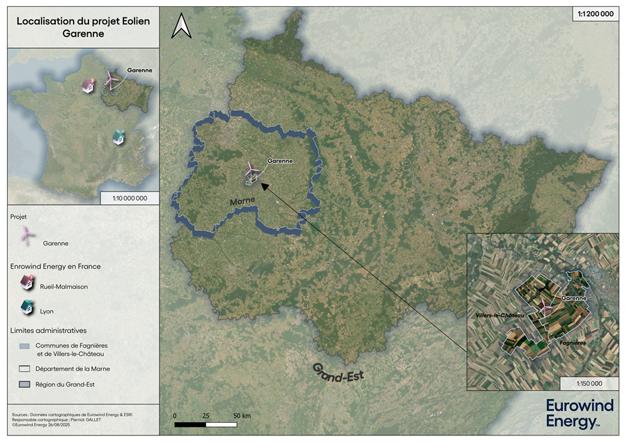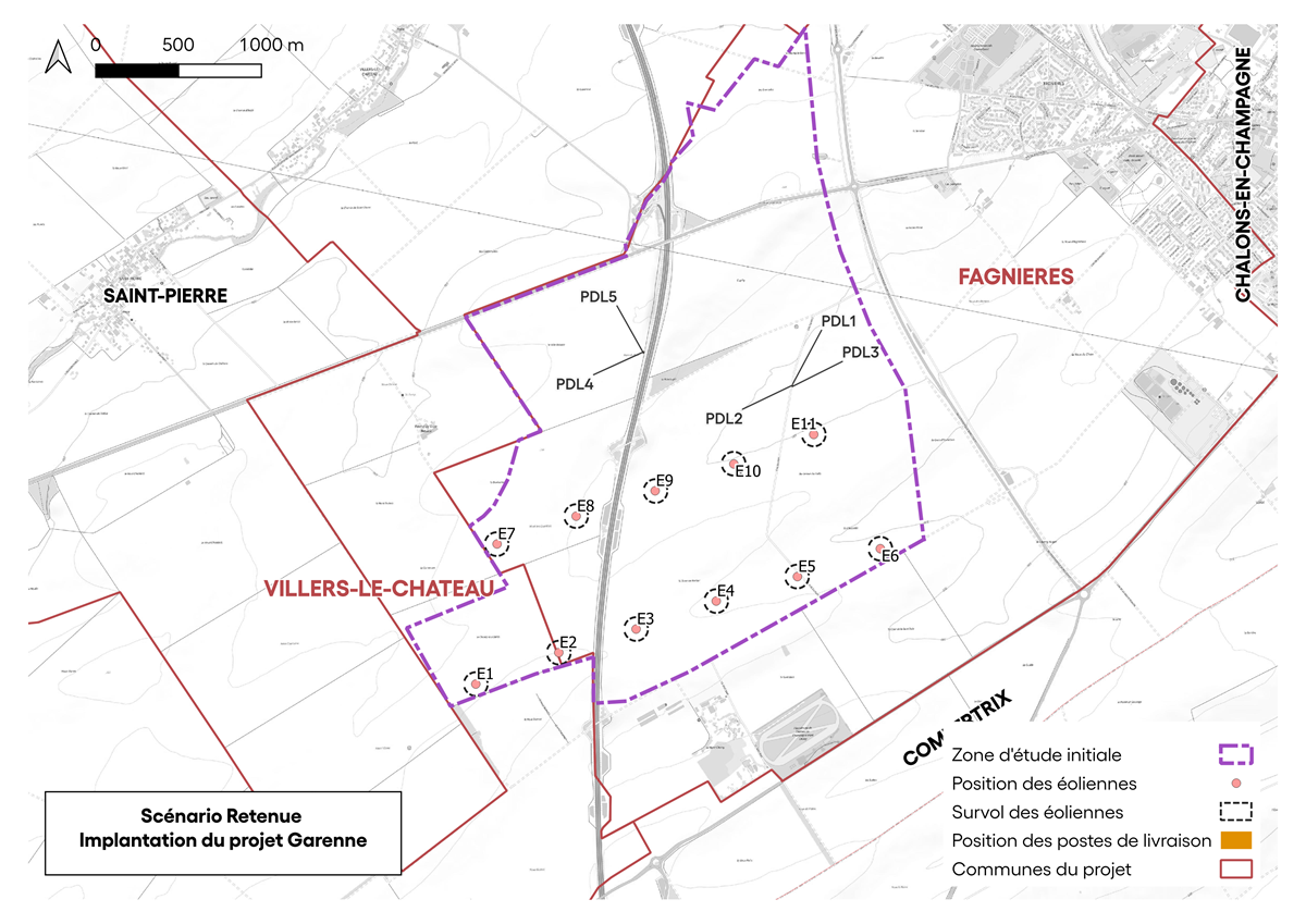 Situé dans le département de la Marne (51), le parc éolien de Garenne, s’établit autour des communes de Fagnières, Villers-le-Château, à l'ouest de Châlons-en-Champagne.
